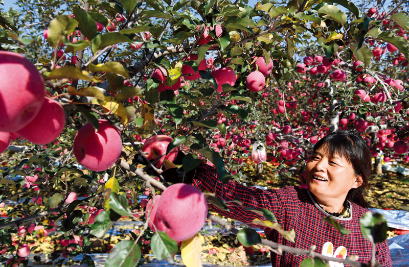 在洛川,有勞動能力的2836戶貧困戶中有2604戶建起蘋果園。