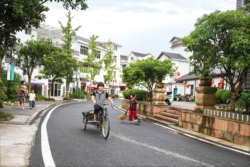 浙江“千萬工程”從抓好道路硬化、路燈亮化、衛(wèi)生潔化、村莊綠化、河道凈化開始,大力推進(jìn)農(nóng)村人居環(huán)境整治,村容村貌和農(nóng)村生態(tài)環(huán)境發(fā)生了深刻變化。圖為杭州市淳安縣楓樹嶺鎮(zhèn)下姜村村民在干凈整潔的村莊里騎行。 新華社記者 黃宗治/攝