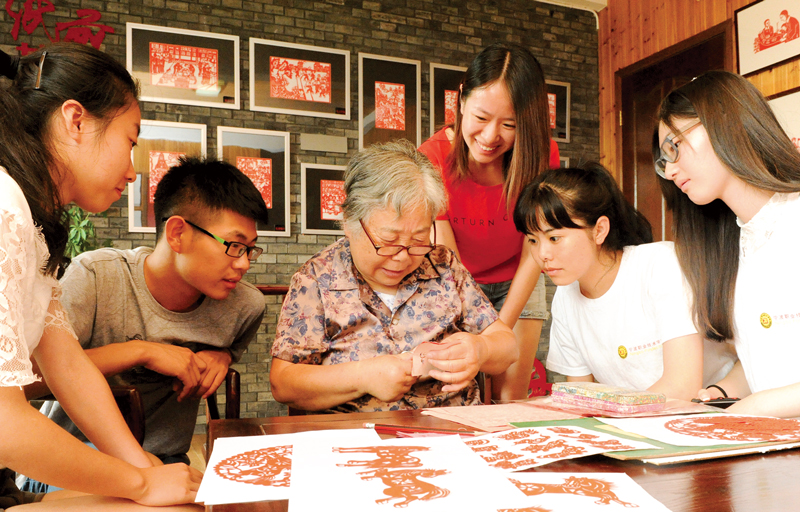 浙江“千萬工程”啟動以來,在整治農(nóng)村人居環(huán)境的同時(shí),也大力加強(qiáng)農(nóng)村公共文化建設(shè),提高鄉(xiāng)村精神文化水平,全面提升農(nóng)民的獲得感、幸福感。圖為寧波市非物質(zhì)文化遺產(chǎn)傳承人在傳授剪紙藝術(shù)。 浙江省農(nóng)辦供圖