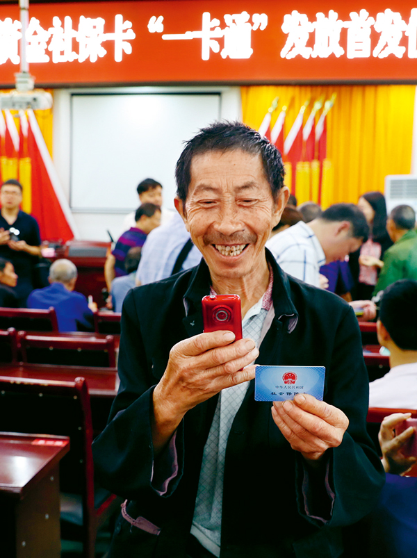 財政補貼或轉移支付是鄉(xiāng)村發(fā)展政策的核心,必須更好發(fā)揮財政支農(nóng)的先導作用。圖為2019年6月28日,四川省廣安市惠民惠農(nóng)財政補貼資金“一卡通”發(fā)放首發(fā)儀式在廣安區(qū)方坪鄉(xiāng)人民政府舉行,該鄉(xiāng)磨盤村低保戶鄧德全正在喜滋滋地查看剛剛收到的資金信息。 中新社發(fā) 廖小兵/攝
