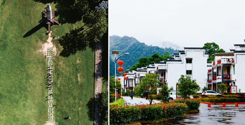 2018年7月29日,瑞金市率先在贛南脫貧摘帽,“共和國搖籃”在全面建成小康社會道路上邁出關(guān)鍵一步。左圖為2018年7月21日拍攝的江西瑞金市紅軍烈士紀(jì)念塔的鳥瞰圖(黃龍/攝)。右圖為2019年5月6日拍攝的華屋村新貌(新華社記者 蘭紅光/攝)。華屋村位于江西瑞金市葉坪鄉(xiāng),是遠(yuǎn)近聞名的“紅軍村”。