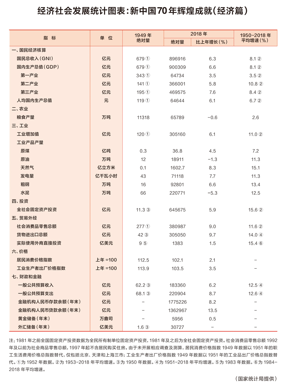 經(jīng)濟(jì)社會(huì)發(fā)展統(tǒng)計(jì)圖表:新中國70年輝煌成就(經(jīng)濟(jì)篇)