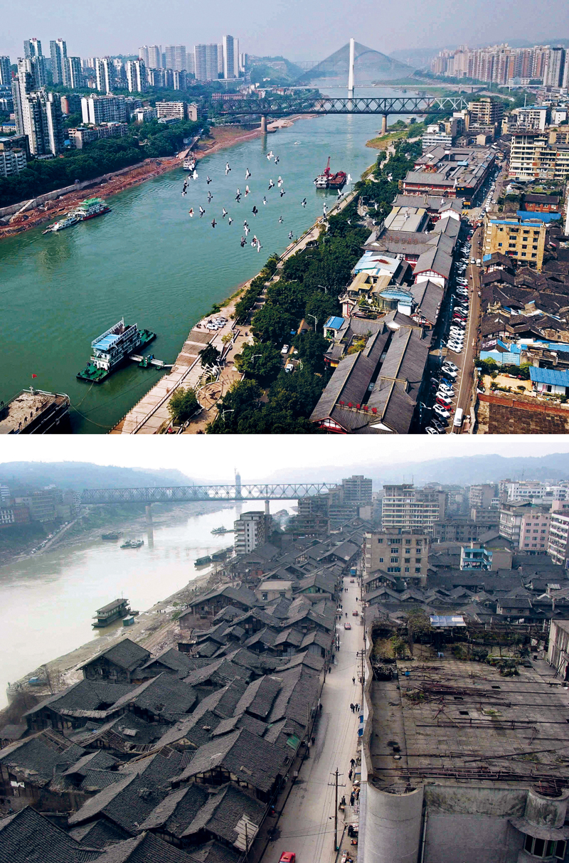 四川省宜賓市有“萬(wàn)里長(zhǎng)江第一城”之稱(chēng),金沙江、岷江在這里匯合,在長(zhǎng)江生態(tài)環(huán)境保護(hù)方面具有特殊的地位。上下圖分別為2018年5月、2012年1月在同一視角拍攝的金沙江兩岸。 新華社發(fā) 曾朗/攝