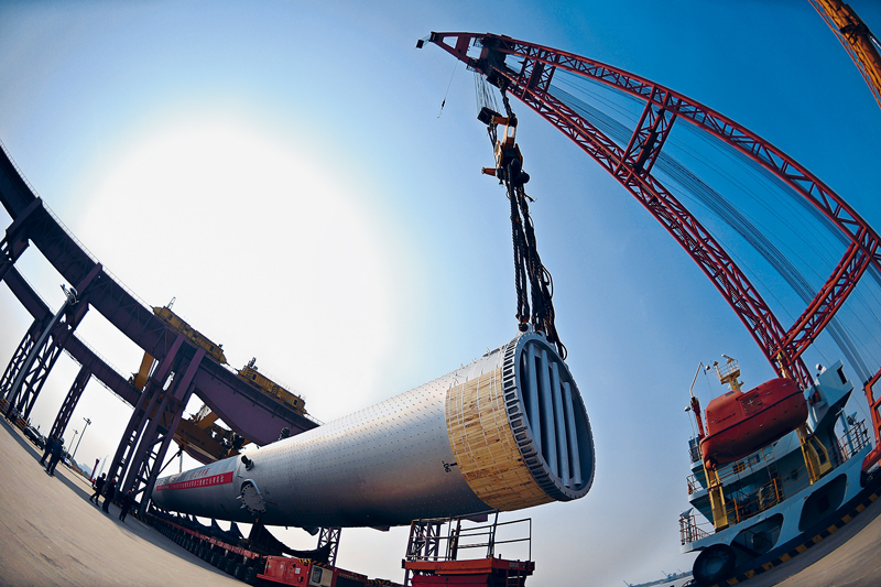 2018年4月28日,世界最重的260萬(wàn)噸/年沸騰床渣油鍛焊加氫反應(yīng)器在江蘇鎮(zhèn)江制造成功并發(fā)運(yùn),創(chuàng)造了長(zhǎng)江航道有史以來(lái)最大重量吊裝新紀(jì)錄。加氫反應(yīng)器常用于將石油工業(yè)中最難利用的重質(zhì)部分——渣油加氫轉(zhuǎn)化為輕質(zhì)油,從而生產(chǎn)出汽油、柴油等。這臺(tái)由國(guó)機(jī)重型裝備集團(tuán)股份有限公司研制的總長(zhǎng)超過(guò)70米、重達(dá)2400噸的設(shè)備,創(chuàng)造了產(chǎn)品重量、制造工藝復(fù)雜性?xún)蓚€(gè)“世界之最”,是我國(guó)油品提質(zhì)升級(jí)項(xiàng)目中的核心裝備,成為國(guó)家能源保障和美麗中國(guó)建設(shè)的“國(guó)之重器”。圖為渣油鍛焊加氫反應(yīng)器正在進(jìn)行吊裝。 新華社記者 李響/攝