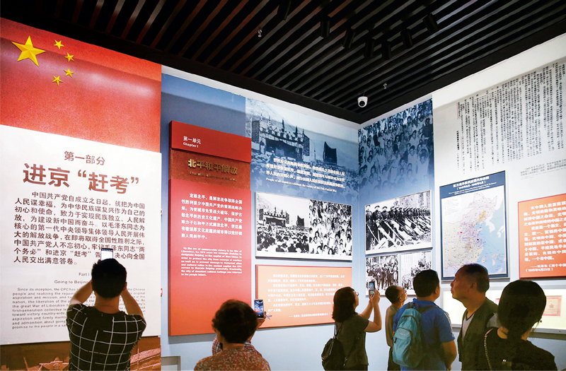2019年9月13日,北京香山革命紀念館向公眾開放?!稙樾轮袊旎泄仓醒朐谙闵健分黝}展全景式生動呈現(xiàn)了中共中央在香山期間領(lǐng)導(dǎo)全國各族人民,完成民族獨立和人民解放的歷史使命、開啟中國歷史發(fā)展新紀元的光輝歷程。圖為9月15日展覽現(xiàn)場。 人民圖片 陳曉根/攝
