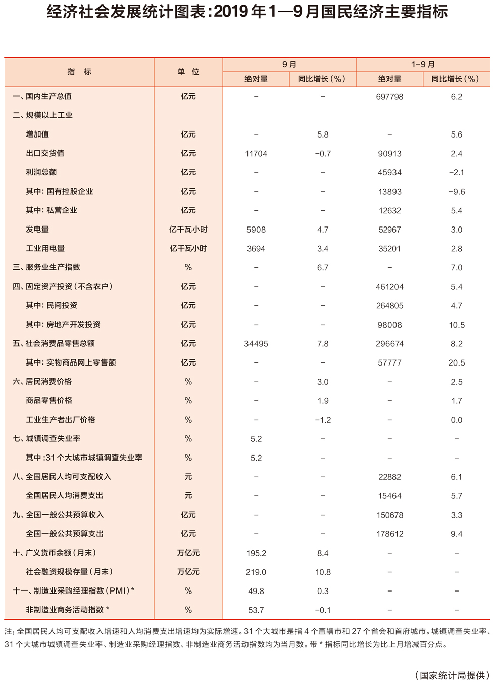 經(jīng)濟社會發(fā)展統(tǒng)計圖表:2019年1—9月國民經(jīng)濟主要指標(biāo)