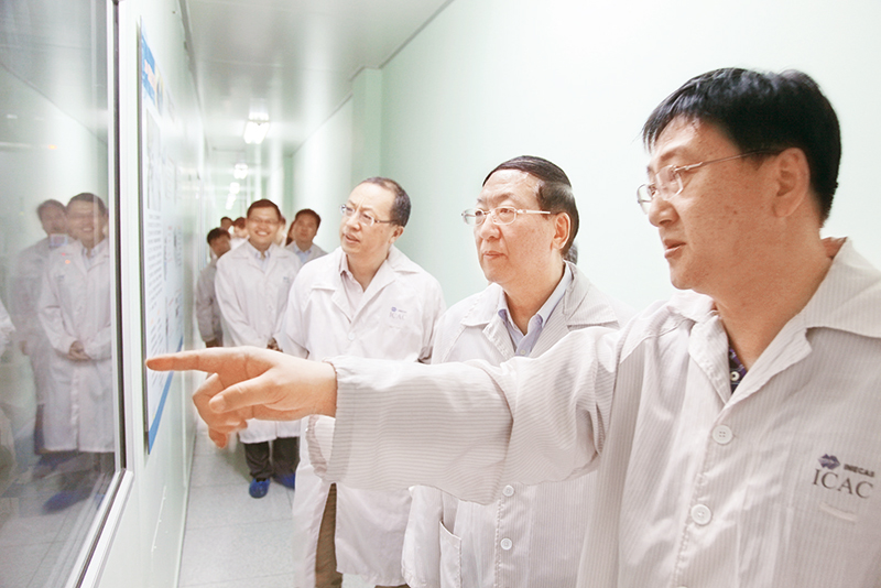 2019年5月17日,科技部重大專(zhuān)項(xiàng)司黨支部、重大專(zhuān)項(xiàng)推進(jìn)工作組臨時(shí)黨支部與中科院微電子研究所黨委開(kāi)展黨建聯(lián)學(xué)活動(dòng),推進(jìn)黨建工作與重大專(zhuān)項(xiàng)管理工作深度融合。圖為在黨建聯(lián)學(xué)活動(dòng)中,黨員干部對(duì)集成電路裝備及工藝重大專(zhuān)項(xiàng)推進(jìn)實(shí)施情況進(jìn)行實(shí)地調(diào)研。 科技部供圖