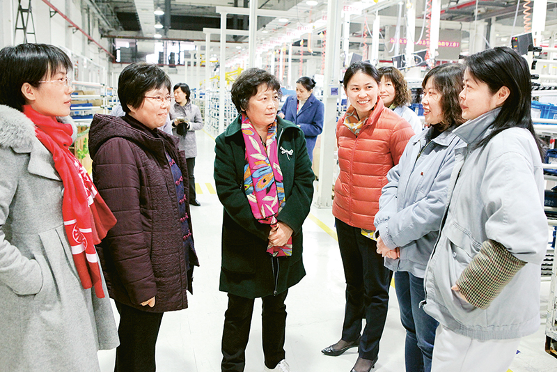 全總把大興調(diào)研之風(fēng)、密切與職工群眾的血肉聯(lián)系作為正風(fēng)肅紀(jì)的重要切入點(diǎn),樹(shù)立起以職工為中心的鮮明導(dǎo)向。圖為2018年3月19日,全總女職工部黨支部赴上海柴油機(jī)股份有限公司調(diào)研,在生產(chǎn)車間與女職工面對(duì)面交流,了解她們的意見(jiàn)建議。 全總機(jī)關(guān)黨委供圖