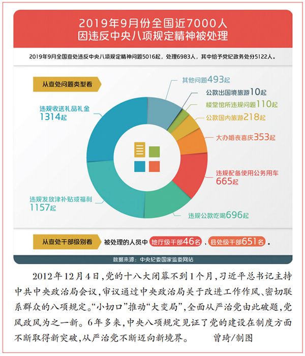第三,完善和落實(shí)黨內(nèi)政治生活制度規(guī)定。習(xí)近平總書記指出,“嚴(yán)肅黨內(nèi)政治生活是全面從嚴(yán)治黨的基礎(chǔ)。黨要管黨,首先要從黨內(nèi)政治生活管起;從嚴(yán)治黨,首先要從黨內(nèi)政治生活嚴(yán)起?!睔v史經(jīng)驗(yàn)和教訓(xùn)表明,什么時(shí)候黨內(nèi)政治生活正常健康,我們黨就風(fēng)清氣正、團(tuán)結(jié)統(tǒng)一,充滿生機(jī)活力,黨的事業(yè)就蓬勃發(fā)展;什么時(shí)候黨內(nèi)政治生活不正常不健康,黨內(nèi)就弊病叢生、人心渙散,各種錯(cuò)誤思想、錯(cuò)誤路線得不到及時(shí)糾正,給黨的事業(yè)造成損失。黨的十八大之前,一些不良風(fēng)氣之所以能夠在黨內(nèi)滋長蔓延,“七個(gè)有之”問題突出,與黨內(nèi)政治生活隨意化、形式化、平淡化、庸俗化有很大關(guān)系。黨的十八大以來,黨中央把加強(qiáng)和規(guī)范黨內(nèi)政治生活作為全面從嚴(yán)治黨的重要抓手,從黨的群眾路線教育實(shí)踐活動(dòng)開始,探索了一條增強(qiáng)黨內(nèi)政治生活政治性、時(shí)代性、原則性、戰(zhàn)斗性,提高黨內(nèi)政治生活質(zhì)量的有效途徑。黨的十八屆六中全會(huì)通過《關(guān)于新形勢下黨內(nèi)政治生活的若干準(zhǔn)則》,建立了一系列加強(qiáng)和規(guī)范黨內(nèi)政治生活的制度。黨的十九大把嚴(yán)格執(zhí)行新形勢下黨內(nèi)政治生活的若干準(zhǔn)則作為加強(qiáng)黨的政治建設(shè)的一項(xiàng)重要任務(wù)和舉措,提出了明確要求。應(yīng)當(dāng)說,大的制度和要求都有了,各級(jí)黨組織要結(jié)合實(shí)際完善具體制度,嚴(yán)格抓好制度落實(shí)。通過完善和落實(shí)制度,把黨內(nèi)政治生活加強(qiáng)和規(guī)范起來,把政治紀(jì)律和政治規(guī)矩嚴(yán)明起來,發(fā)展積極健康的黨內(nèi)政治文化,全面凈化黨內(nèi)政治生態(tài)。