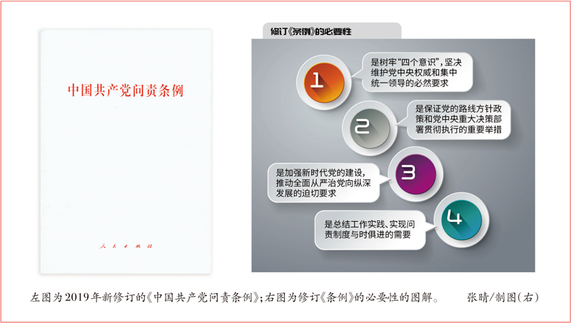 圖為2019年新修訂的《中國共產(chǎn)黨問責(zé)條例》部分內(nèi)容圖解。 張晴/制圖