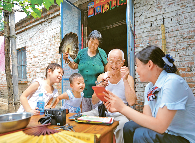 “百姓富”是價值所在,反映了以人民為中心的發(fā)展思想。2019年江蘇省落實城鄉(xiāng)居民養(yǎng)老保險待遇和基礎(chǔ)養(yǎng)老金調(diào)整機制,將基礎(chǔ)養(yǎng)老金省定最低標準提高到每人每月148元。圖為中國郵政儲蓄銀行徐州市房村鎮(zhèn)營業(yè)所工作人員在銅山區(qū)房村鎮(zhèn)上門為結(jié)對幫扶老人送養(yǎng)老金。 新華日報社供圖 劉立明/攝