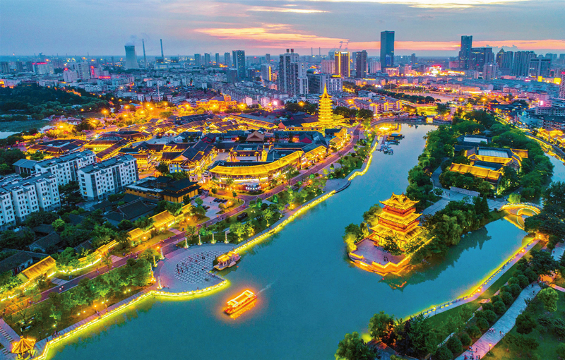江蘇以習(xí)近平總書記關(guān)于大運河文化帶建設(shè)的重要指示批示精神為指導(dǎo),站在民族文化復(fù)興的高度,大力推動大運河文化帶江蘇段建設(shè),打造江蘇文化建設(shè)高質(zhì)量的鮮明標志和閃亮名片。圖為2018年11月6日航拍的淮安清江浦,大運河文化帶建設(shè)讓昔日“運河之都”清江浦流光溢彩。 新華日報社供圖 鄭健/攝