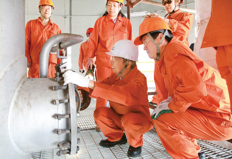 2006年2月,春節(jié)剛過,陳俊武辦公室的電話就響了起來:甲醇制低碳烯烴試驗現(xiàn)場出現(xiàn)了由于催化劑磨損而使試驗無法正常進行的問題。他急忙趕到現(xiàn)場,查看電腦試驗數(shù)據(jù)后,二話不說,穿上工作服,迅速爬上幾十米高的反應(yīng)器平臺,檢查設(shè)備運行情況。十幾層樓高的平臺,小伙子上去都氣喘吁吁,這位年近80歲的老人,竟然一口氣爬了上去!在場人員都感到震驚。陳俊武常常告誡大家:“做工程設(shè)計的人,在現(xiàn)場工作的時間不夠,是干不好的?!痹谒慕陶d和帶領(lǐng)下,技術(shù)人員每到現(xiàn)場都必須做兩件事——鉆兩器(反應(yīng)器和再生器,都是煉油裝置的核心設(shè)備)、爬高塔,近距離察看每一臺設(shè)備、每一根管線。