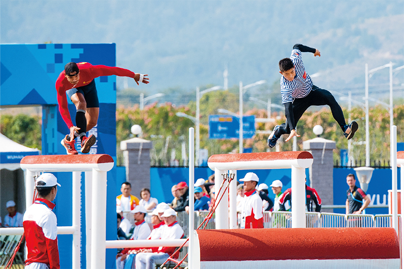 軍運(yùn)會(huì)最具特色的就是設(shè)置了軍事五項(xiàng)、海軍五項(xiàng)、空軍五項(xiàng)、跳傘、定向越野等比賽項(xiàng)目,貼近實(shí)戰(zhàn),也能體現(xiàn)一支軍隊(duì)的戰(zhàn)斗力和戰(zhàn)斗精神。我軍體育健兒學(xué)習(xí)中國(guó)女排精神,屢屢刷新比賽紀(jì)錄、創(chuàng)造賽場(chǎng)奇跡?!皹屚酢苯鹩镜聨ьI(lǐng)團(tuán)隊(duì)頂住壓力奪首金,軍事五項(xiàng)潘玉程“像子彈一樣”飛越障礙成為“網(wǎng)紅”,奪得海軍五項(xiàng)比賽女子個(gè)人冠軍的張娜,是來(lái)自海軍陸戰(zhàn)隊(duì)的普通一兵,獲得空軍五項(xiàng)男子個(gè)人冠軍的李睿,曾是空軍航空大學(xué)的一名警衛(wèi)戰(zhàn)士……這些軍體健兒在比賽中不畏強(qiáng)手、敢于亮劍的拼搏精神,傳承和弘揚(yáng)了我軍一不怕苦、二不怕死的戰(zhàn)斗精神,展示了威武之師、文明之師、勝利之師的良好形象,立起了新時(shí)代革命軍人的好樣子。
