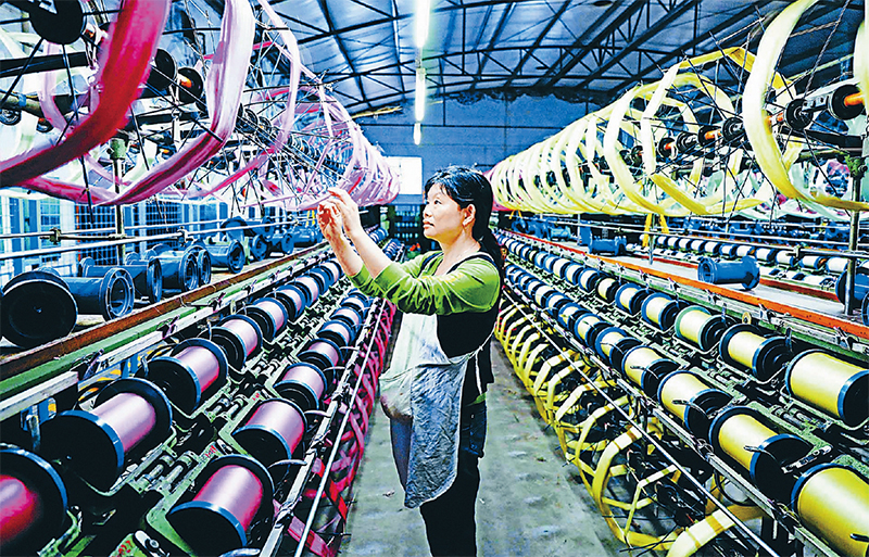 民營(yíng)企業(yè)是吸納就業(yè)的重要渠道。重慶市梁平區(qū)把發(fā)展民營(yíng)企業(yè)作為促進(jìn)區(qū)域經(jīng)濟(jì)發(fā)展、提升就業(yè)水平的重要抓手。目前梁平工業(yè)園區(qū)共有民營(yíng)企業(yè)270戶,吸納失業(yè)人員、被征地農(nóng)民等2萬(wàn)余人就地就近就業(yè)。圖為重慶宏美達(dá)欣興實(shí)業(yè)(集團(tuán))有限公司梁平分公司的紡織工人在崗位上忙碌。 中國(guó)勞動(dòng)保障報(bào)供圖 劉輝/攝