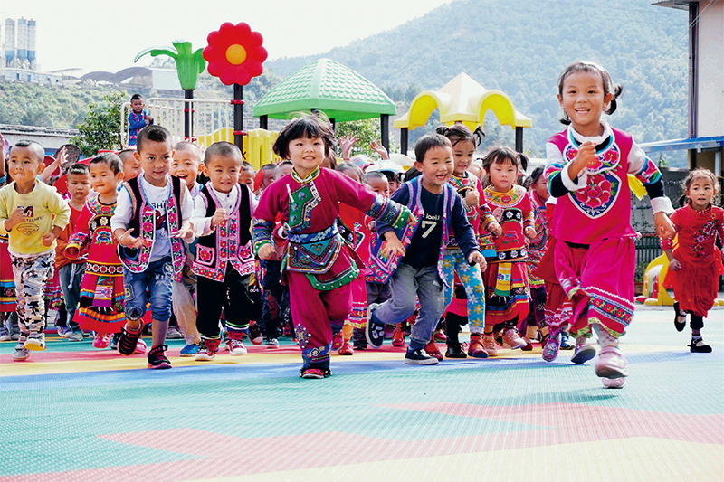云南是全國世居少數(shù)民族最多、特有民族最多、跨境民族最多、民族自治地方最多的省份,是中華民族大家庭的縮影,做好民族工作事關(guān)全國民族團結(jié)進步事業(yè)大局。圖為2017年12月24日,云南楚雄彝族自治州牟定縣江坡鎮(zhèn)中心幼兒園各民族小朋友在課間活動的場面。 楚雄州委宣傳部供圖 黑興友/攝
