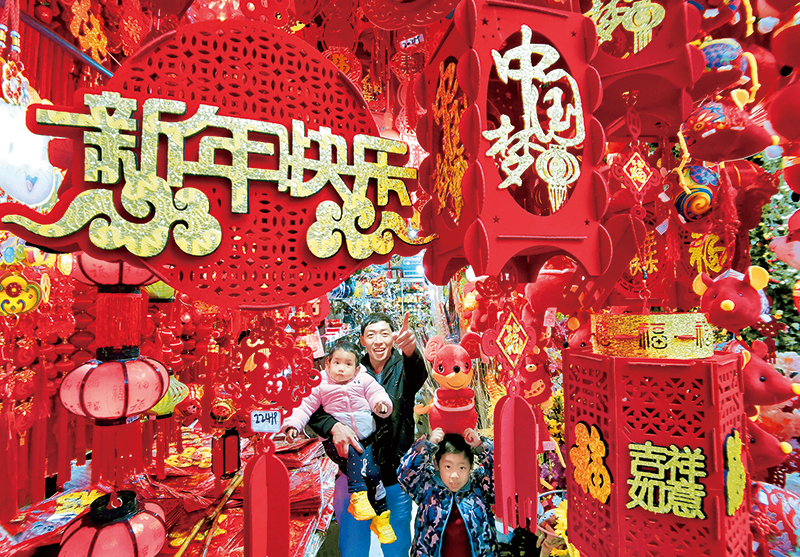 中國(guó)市場(chǎng)空間廣闊,蘊(yùn)藏著巨大的消費(fèi)潛力,為中國(guó)經(jīng)濟(jì)發(fā)展提供強(qiáng)大支撐。圖為2020年1月8日,四川綿陽(yáng)一家商場(chǎng)里,各種各樣的“紅色”年貨琳瑯滿(mǎn)目,營(yíng)造出了濃濃的節(jié)日氛圍。 人民圖片 陳冬冬/攝
