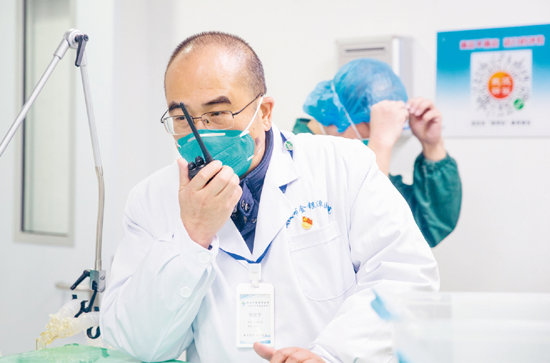 武漢市金銀潭醫(yī)院院長張定宇拖著患病的身體,與生命賽跑,讓人動容。2月4日,湖北省人社廳、衛(wèi)健委給予他記大功獎勵。圖為張定宇在聯(lián)系協(xié)調(diào)工作。 新華社發(fā) 柯皓/攝