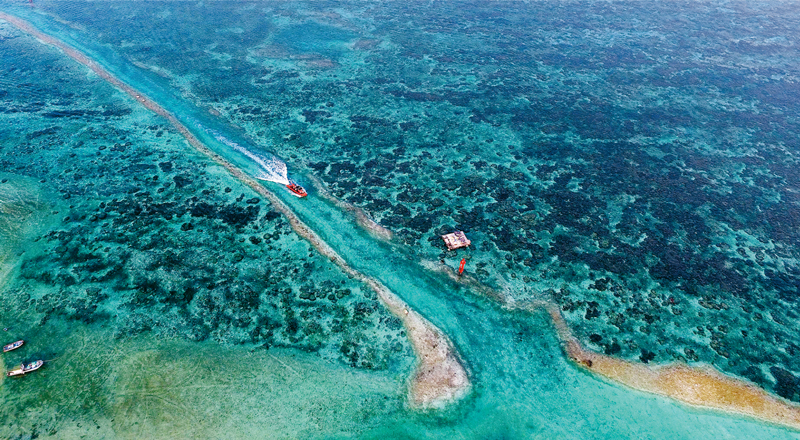 三沙市是我國最南端的年輕城市,隨著基礎(chǔ)設(shè)施建設(shè)的逐漸完善,補給保障、交通運輸、應(yīng)急救援等方面的能力逐步加強,將成為海上絲綢之路上重要的美麗驛站。圖為一條船駛?cè)霑x卿島的航道。 新華社記者 郭程/攝