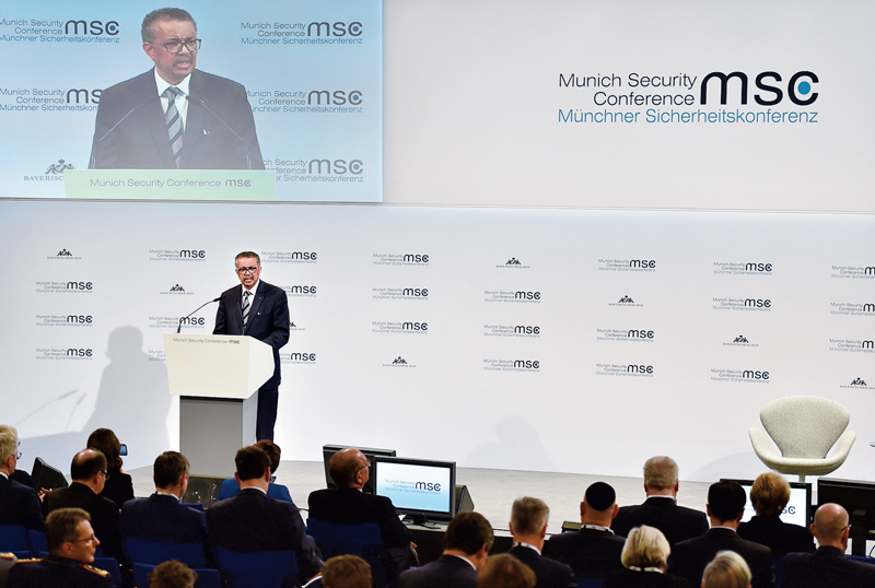 2020年2月15日,世界衛(wèi)生組織總干事譚德塞在德國慕尼黑表示,中國采取的從源頭上控制新冠肺炎疫情的措施令人鼓舞,盡管這些措施讓中國付出了很大代價,但為世界爭取了時間,減緩了病毒向世界其他地方傳播的速度。 新華社記者 逯陽/攝