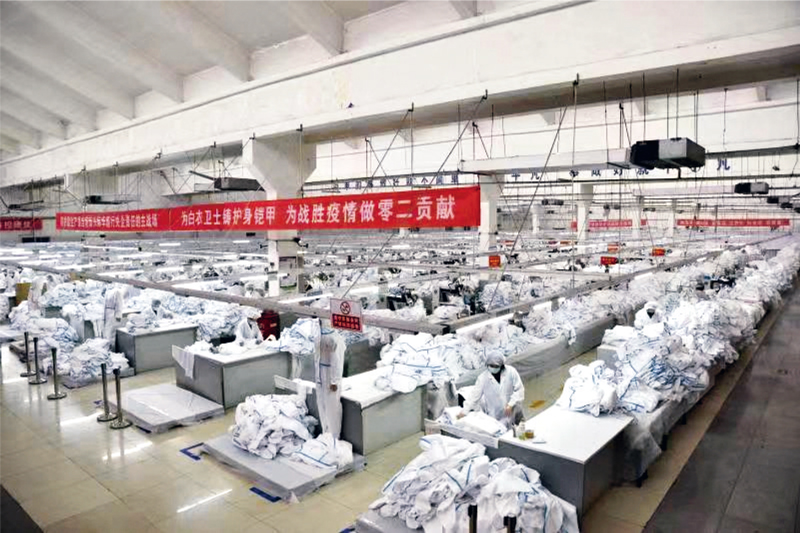 經(jīng)過前一階段的不懈努力,目前醫(yī)療物資統(tǒng)一調(diào)配和供應(yīng)保障逐步強化,實現(xiàn)了從最初十分緊缺到緊平衡再到基本滿足的轉(zhuǎn)變。圖為新興際華集團所屬際華3502公司防護服生產(chǎn)車間。 工業(yè)和信息化部黨組供圖