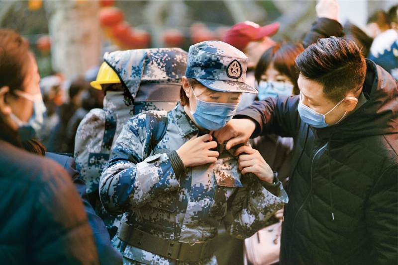 除夕夜,各戰(zhàn)區(qū)、各軍兵種、各大單位緊急行動起來。3支軍隊醫(yī)療隊先期抵達武漢后,第一時間批量接收患者,第一時間進入隔離病區(qū),第一時間診治危重病人……在這個特殊的戰(zhàn)場,450名勇士用敢打硬拼的精神創(chuàng)造了一個個“第一時間”,讓人真切感受到軍人的拼勁!