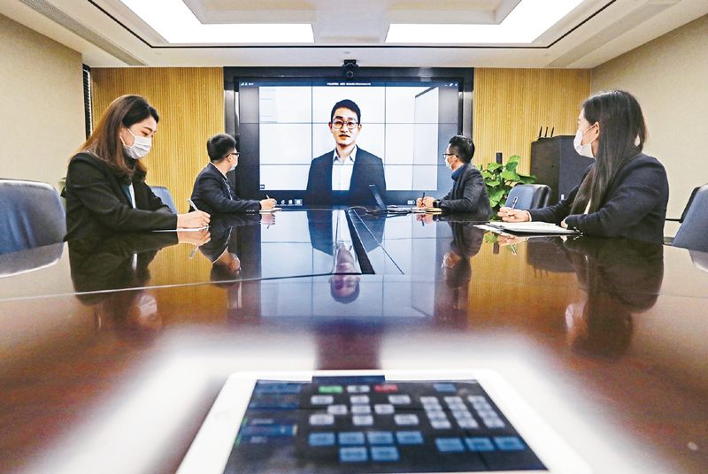 隨著疫情防控和復工復產(chǎn)有序推進,要優(yōu)化招用工舉措,著力推進線上就業(yè)服務和技能培訓,推動市場供求匹配,保障企業(yè)用工和勞動力就業(yè)應聘雙向需求。圖為2020年3月3日,在浙江省寧波市江北區(qū)的一家公司,一場線上“云面試”正在進行,負責招聘面試的工作人員通過遠程視頻連線,和在家里的求職者進行線上對話。 人民圖片 章勇濤/攝
