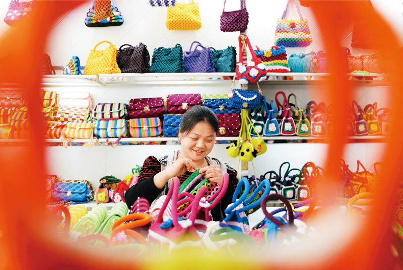 增加就業(yè)是最有效最直接的脫貧方式。在做好疫情防控的前提下,要有序推進易地扶貧搬遷安置點的“扶貧車間”復工復產(chǎn),促進搬遷群眾在家門口實現(xiàn)就業(yè)增收,不斷鞏固脫貧攻堅成果。圖為2020年3月21日,在貴州省赤水市長期鎮(zhèn)康橋社區(qū),一名婦女在安置點的“扶貧車間”內(nèi)鉤織產(chǎn)品。 人民圖片 王長育/攝