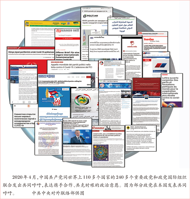 推動世界政黨發(fā)出共同呼吁。習近平總書記指出,“重大傳染性疾病是全人類的敵人”,“新冠肺炎疫情再次表明,人類是一個休戚與共的命運共同體”。我們黨依托國際政黨交流合作網(wǎng)絡,引領(lǐng)各方深刻認識到,面對新冠肺炎疫情全球蔓延,任何國家都無法獨善其身,只有攜手合作才能打贏這場戰(zhàn)役。習近平總書記親自與老撾人民革命黨中央總書記、國家主席本揚等多國元首和政黨領(lǐng)導人通電話,強調(diào)“病毒沒有國界,不分種族,國際社會只有形成合力,才能戰(zhàn)而勝之”。在我們黨積極推動下,世界上110多個國家的240多個重要政黨和政黨國際組織聯(lián)合發(fā)出共同呼吁,指出新冠肺炎疫情對人類衛(wèi)生健康及世界和平發(fā)展構(gòu)成最緊迫和最嚴峻的挑戰(zhàn),各國應增強人類命運共同體意識,加強國際合作,相互支持和幫助,匯集全球的資源和力量,堅決打敗病毒這一人類的共同敵人,堅決反對將公共衛(wèi)生問題政治化,呼吁各國把人民生命安全和身體健康放在第一位,并采取積極措施保護外國僑民、留學生的健康安全和合法權(quán)益。這是新冠肺炎疫情暴發(fā)以來世界主要政黨首次就國際抗疫合作發(fā)出共同聲音,成為世界政黨交往史上一件大事。與此同時,推動亞洲政黨國際會議和二十國集團民間社會會議發(fā)表呼吁加強國際抗疫合作的共同倡議和聲明,表達了各方攜手合作、共克時艱的政治愿望,產(chǎn)生了良好的政治效果。