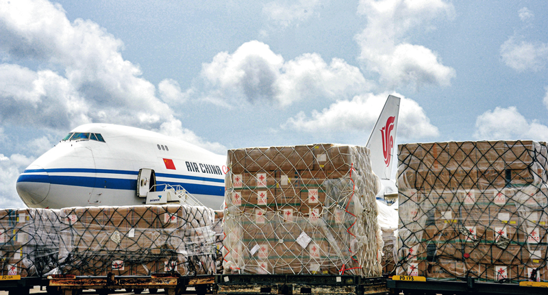 2020年4月6日,中國援助18個非洲國家的抗疫物資運抵加納。除加納外,這批物資還將在這里中轉(zhuǎn)運往其他17個國家,以幫助當(dāng)?shù)乜箵粢咔椤?新華社記者 許正/攝