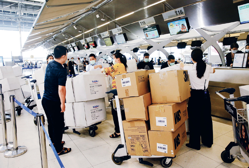 2020年1月31日,泰國(guó)華僑華人愛(ài)心人士捐贈(zèng)的一批防護(hù)服、口罩等物資在曼谷素萬(wàn)那普機(jī)場(chǎng)辦理手續(xù)準(zhǔn)備運(yùn)往武漢。新冠肺炎疫情暴發(fā)以來(lái),泰國(guó)許多華人華僑和中資企業(yè)紛紛采購(gòu)抗疫物資捐贈(zèng)武漢相關(guān)機(jī)構(gòu)。 中新社記者 王國(guó)安/攝
