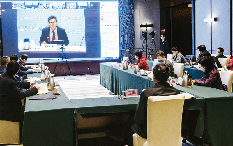 新冠肺炎疫情發(fā)生后,世界衛(wèi)生組織多次表達與中國展開疫情相關科研合作的意愿,我國也定期與世衛(wèi)組織及時、主動通報疫情信息。圖為2020年3月27日,中國專家在武漢新冠肺炎疫情信息通報會會場參加世衛(wèi)組織新冠肺炎信息通報會,分享防控經(jīng)驗。 新華社記者 才揚/攝