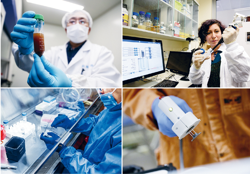 面對新冠肺炎疫情對全球健康和生命安全的嚴重威脅,世界各國加強了科研合作,合力加速研發(fā)新冠疫苗,為人類戰(zhàn)“疫”打造最有力的武器。左上為中國工作人員在演示新冠病毒mRNA疫苗實驗過程(新華社記者 丁汀/攝);右上為以色列研究人員在以色列北部的米蓋爾—加利利研究所內(nèi)工作(新華社/基尼圖片社);左下為美國匹茲堡大學的研究人員進行新冠疫苗研究(新華社發(fā)/匹茲堡大學醫(yī)療中心供圖);右下為澳大利亞國家科學機構——聯(lián)邦科學與工業(yè)研究組織的科學家進行新冠病毒候選疫苗臨床前試驗(新華社發(fā))。