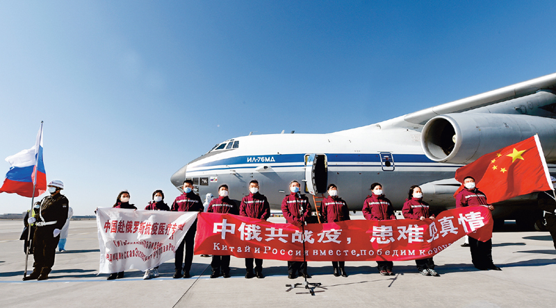面對全球新冠肺炎疫情持續(xù)蔓延的嚴峻形勢,中國政府派出多支抗疫醫(yī)療專家組支持世界各國的抗疫行動,應對人類共同的敵人。圖為2020年4月11日,中國政府赴俄羅斯抗疫醫(yī)療專家組啟程。 新華社記者 徐旭/攝