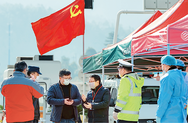 浙江省杭州市紀(jì)委監(jiān)委立足“監(jiān)督的再監(jiān)督”,專項(xiàng)監(jiān)督組對物資流通“堵點(diǎn)”問題開展監(jiān)督檢查,確保防控疫情應(yīng)急保障物資和生活必需品運(yùn)輸?shù)耐〞?。圖為2020年2月9日,杭州淳安縣紀(jì)檢監(jiān)察干部在杭新景高速千島湖出口檢查物資綠色通道落實(shí)情況。 浙江省淳安縣紀(jì)委監(jiān)委 毛勇鋒/攝
