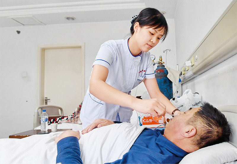 吉林省人民醫(yī)院自2017年起對農(nóng)村五保對象、城市低保對象及精準(zhǔn)扶貧對象等重點救助對象實行免費基本醫(yī)療,即全部免除重點救助對象因病住院產(chǎn)生的政策內(nèi)自付醫(yī)療費用。圖為吉林省人民醫(yī)院心內(nèi)科護士為一位享受免費基本醫(yī)療的患者佩戴吸氧設(shè)備。 新華社記者 張楠/攝