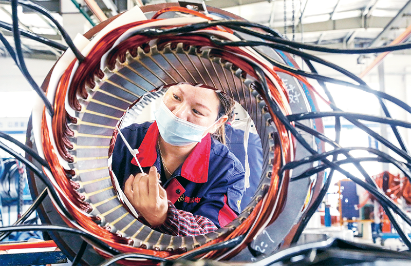 盡管受疫情影響,但我國貨物貿(mào)易總體規(guī)模依然可觀,貿(mào)易市場多元化趨勢明顯。圖為2020年4月23日,安徽省合肥市廬江縣高新區(qū)安徽德科電氣的生產(chǎn)車間里,工人正加班加點生產(chǎn)發(fā)電機產(chǎn)品主要部件,銷往德國、俄羅斯等國。 人民圖片 左學長/攝