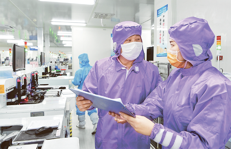 福建省廈門(mén)市思明區(qū)在積極防控疫情的基礎(chǔ)上,為轄區(qū)內(nèi)近1200家重點(diǎn)企業(yè)和項(xiàng)目建立“一對(duì)一”服務(wù)機(jī)制,為每家企業(yè)配備一名“首席服務(wù)官”,幫助協(xié)調(diào)解決企業(yè)遇到的問(wèn)題,助力企業(yè)加速?gòu)?fù)工復(fù)產(chǎn)。圖為2020年4月17日,廈門(mén)市思明區(qū)蓮前街道辦事處招商中心工作人員在廈門(mén)市一家光電科技有限公司向企業(yè)負(fù)責(zé)人了解生產(chǎn)經(jīng)營(yíng)狀況。 新華社記者 魏培全 /攝