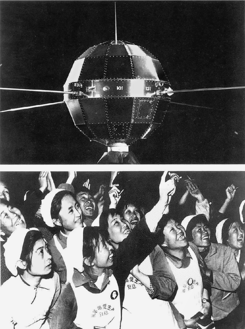 1970年4月24日,我國(guó)第一顆人造地球衛(wèi)星“東方紅一號(hào)”成功發(fā)射,航天事業(yè)從無(wú)到有、從小到大、從弱到強(qiáng),孕育了“兩彈一星”精神、載人航天精神。上圖為“東方紅一號(hào)”;下圖為人們爭(zhēng)相眺望“東方紅一號(hào)”通過北京上空。 新華社發(fā)