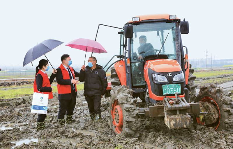 新冠肺炎疫情讓今年的春耕形勢(shì)備受考驗(yàn)。不少銀行推出各項(xiàng)支農(nóng)惠農(nóng)舉措,開(kāi)足馬力支持春耕備耕。圖為2020年3月6日,浙江一家農(nóng)商銀行客戶經(jīng)理在田間地頭為農(nóng)戶提供金融服務(wù)。 中國(guó)銀行保險(xiǎn)報(bào)供圖 蔣加平/攝