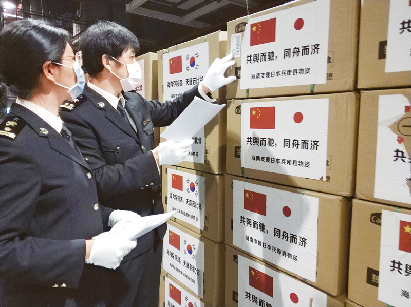 為統(tǒng)籌做好疫情防控和通關(guān)便利化工作,海關(guān)總署出臺一攬子政策措施,大力支持企業(yè)復(fù)工復(fù)產(chǎn),全力以赴促進(jìn)外貿(mào)穩(wěn)增長。圖為2020年2月21日,山東濟(jì)南海關(guān)所屬聊城海關(guān)關(guān)員現(xiàn)場驗放山東時風(fēng)集團(tuán)出口產(chǎn)品,幫扶企業(yè)按時交付海外訂單。 聊城海關(guān)供圖 鄭保國/攝