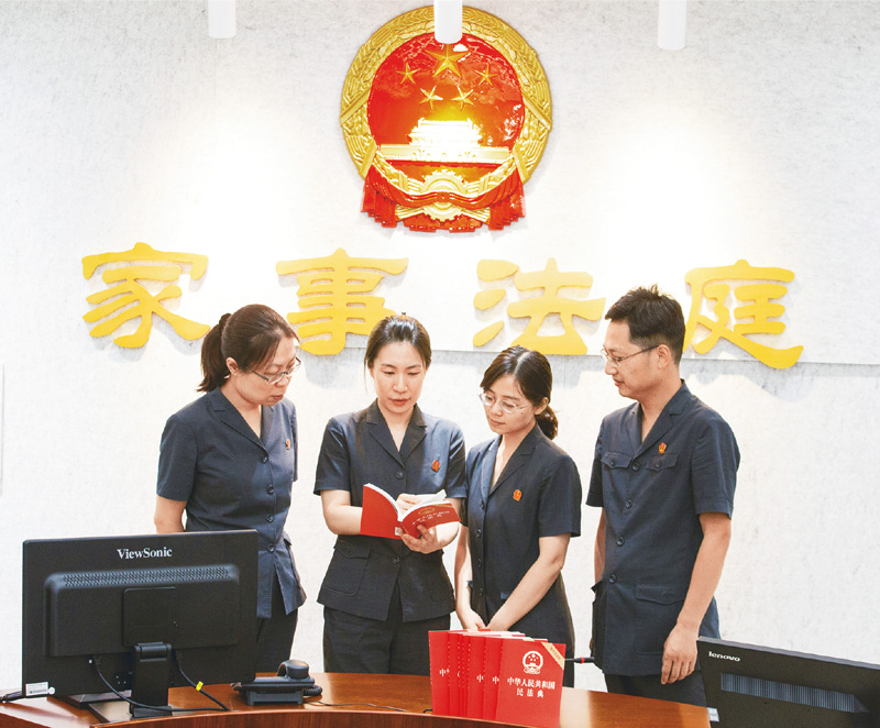 民法典婚姻家庭編中對協(xié)議離婚規(guī)定了一個月的冷靜期。北京市西城區(qū)人民法院自2016年起就在離婚案件中試行訴前冷靜期機(jī)制。圖為2020年6月11日,北京市西城區(qū)人民法院家事審判庭的法官們在學(xué)習(xí)民法典。 劉新武/攝