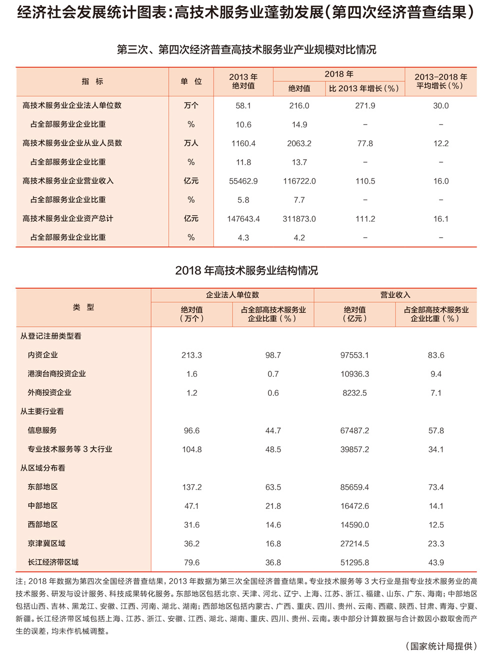 經(jīng)濟(jì)社會(huì)發(fā)展統(tǒng)計(jì)圖表:高技術(shù)服務(wù)業(yè)蓬勃發(fā)展(第四次經(jīng)濟(jì)普查結(jié)果)