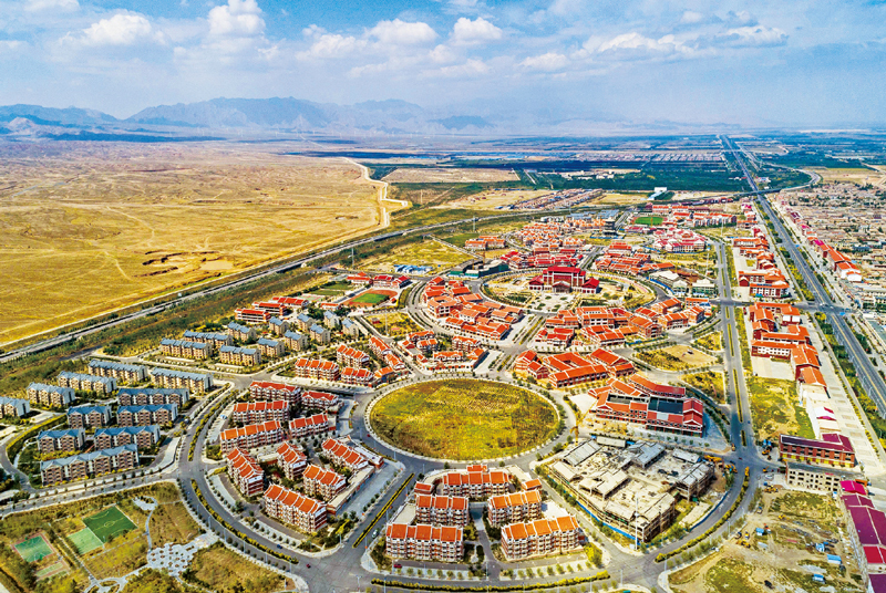 寧夏銀川市永寧縣閩寧鎮(zhèn)新鎮(zhèn)建設全景(無人機照片) 新華社記者 王鵬/攝
