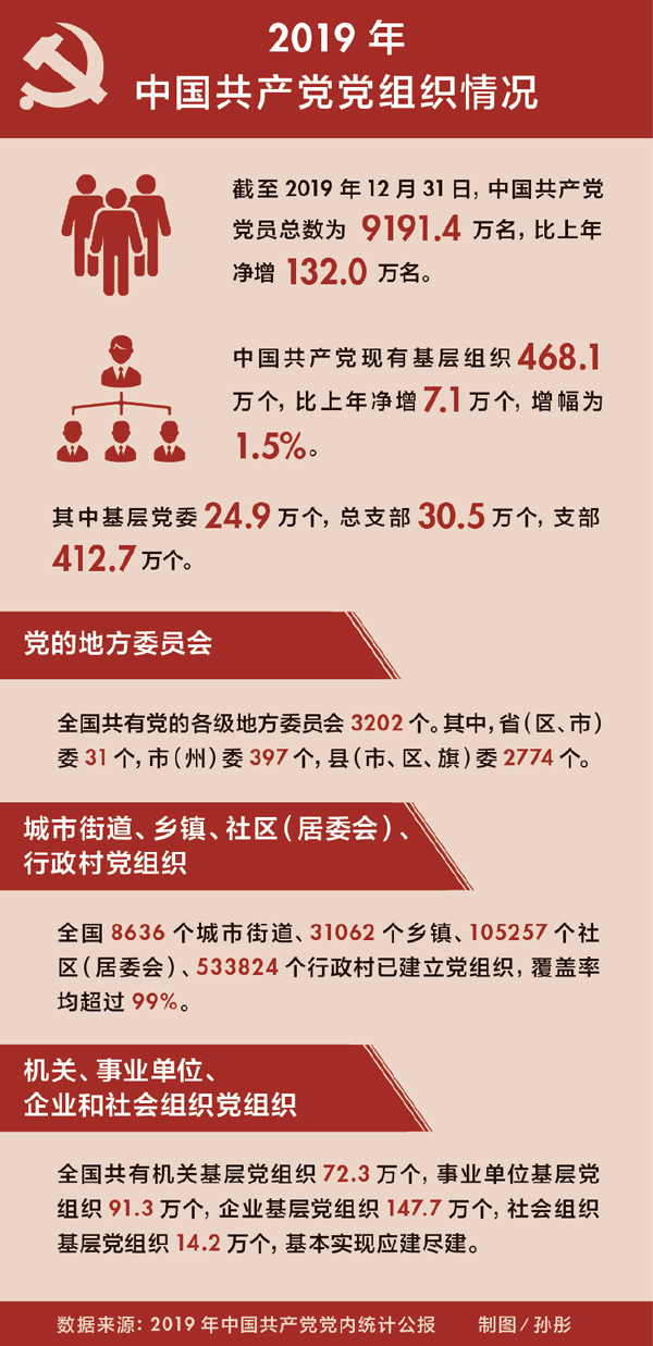 在革命戰(zhàn)爭早期,我們黨就科學認識到黨的組織建設的重要性,著名的三灣改編,以建立了“支部建在連上”的制度而載入史冊。如今,新時代的黨組織建設已使“支部建到網(wǎng)上”、“支部建到產(chǎn)業(yè)鏈上”,等等。從長征路上黨小組“保證一個不掉隊”,到新中國各行各業(yè)的“黨員突擊隊”、救災抗疫一線的“臨時黨支部”;從50多人的小黨,到擁有9000多萬名黨員、460多萬個基層黨組織的世界第一大黨……近百年來,我們黨按照馬克思主義建黨原則,以民主集中制為根本組織制度和領導制度,集中中國工人階級和中國人民、中華民族的先進分子,建立了由黨的中央組織、地方組織和基層組織構成的科學嚴密的組織體系,形成了強大的組織動員力和執(zhí)行力。黨之所以能夠團結帶領人民,實現(xiàn)從建黨的“開天辟地”,到新中國成立的“改天換地”,再到改革開放的“翻天覆地”,特別是新時代舉世矚目的“中國奇跡”,組織嚴密、組織有力是重要保證。