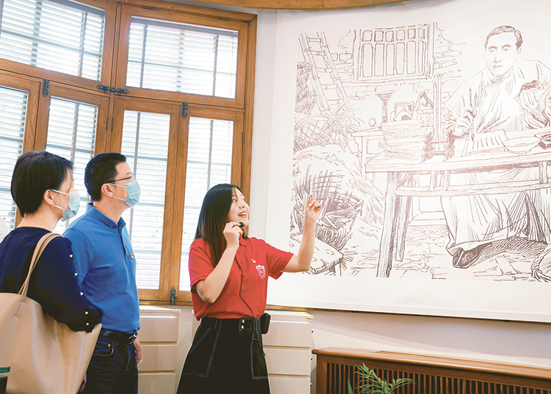 2018年5月,復旦大學將陳望道故居改造為《共產(chǎn)黨宣言》展示館,該校一批青年教師和學生組建黨員志愿服務隊,面向廣大師生和社會各界開展宣講活動。2020年6月,他們中的30名隊員給習近平總書記寫信,表達了做《共產(chǎn)黨宣言》精神忠實傳人的信心和決心。習近平總書記在回信中勉勵他們繼續(xù)講好關(guān)于理想信念的故事,并對全國廣大黨員特別是青年黨員提出殷切期望。圖為黨員志愿服務隊隊員在為觀眾講解。 新華社記者 劉穎/攝