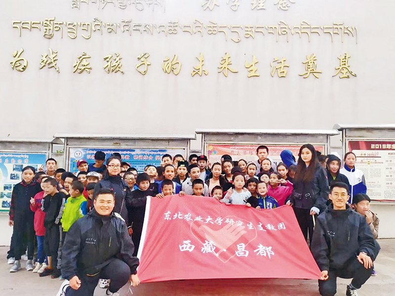 習(xí)近平總書記強(qiáng)調(diào),同人民一道拼搏、同祖國一道前進(jìn),服務(wù)人民、奉獻(xiàn)祖國,是當(dāng)代中國青年的正確方向。他勉勵青年人到基層和人民中去建功立業(yè),讓青春之花綻放在祖國最需要的地方,在實現(xiàn)中國夢的偉大實踐中書寫別樣精彩的人生。圖為2020年8月10日,東北農(nóng)業(yè)大學(xué)支教團(tuán)在西藏昌都市支教期間與學(xué)校師生合影。 新華社記者 楊思琪/攝