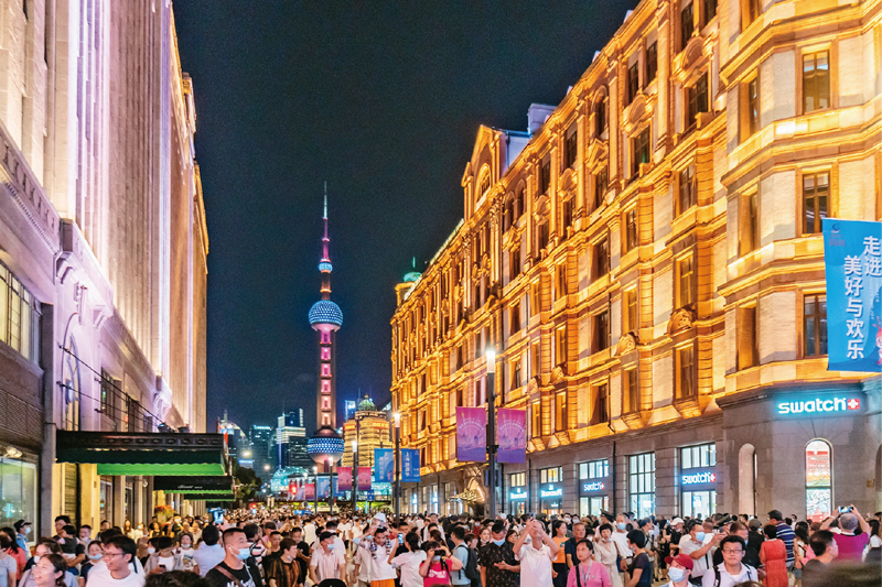 新冠肺炎疫情發(fā)生以來(lái),我國(guó)統(tǒng)籌推進(jìn)疫情防控和經(jīng)濟(jì)社會(huì)發(fā)展,取得顯著成效。圖為2020年9月12日晚,上海南京路步行街東拓段正式開(kāi)街。 中新社發(fā) 王岡/攝