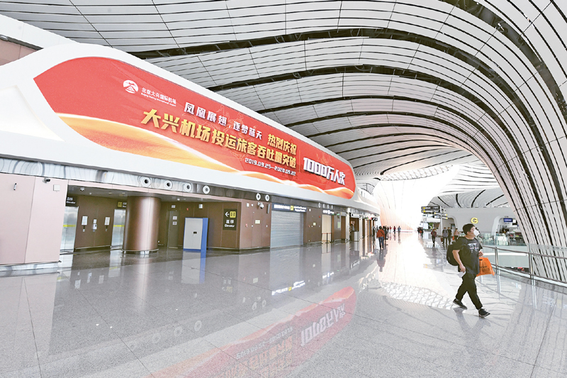 2019年9月25日,北京大興國(guó)際機(jī)場(chǎng)投運(yùn)儀式在北京舉行,習(xí)近平總書(shū)記出席儀式,宣布機(jī)場(chǎng)正式投運(yùn)并巡覽航站樓。時(shí)隔一年,2020年9月22日,北京大興國(guó)際機(jī)場(chǎng)迎來(lái)第1000萬(wàn)名旅客。圖為22日當(dāng)天拍攝的機(jī)場(chǎng)內(nèi)景。 新華社記者 任超/攝