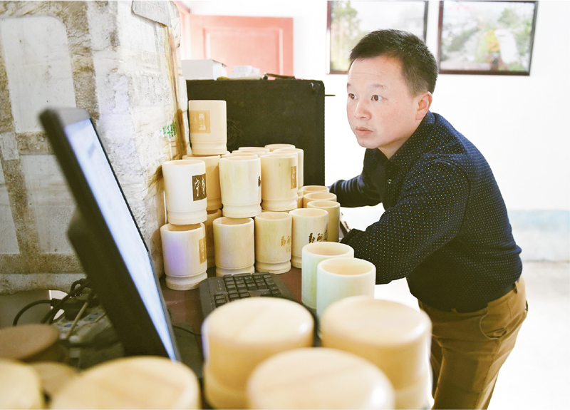 左香云通過互聯(lián)網(wǎng)銷售竹工藝品 新華社供圖
